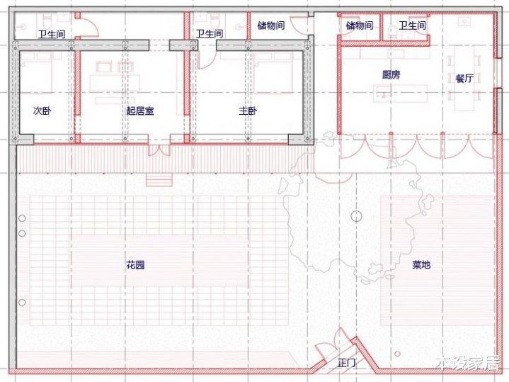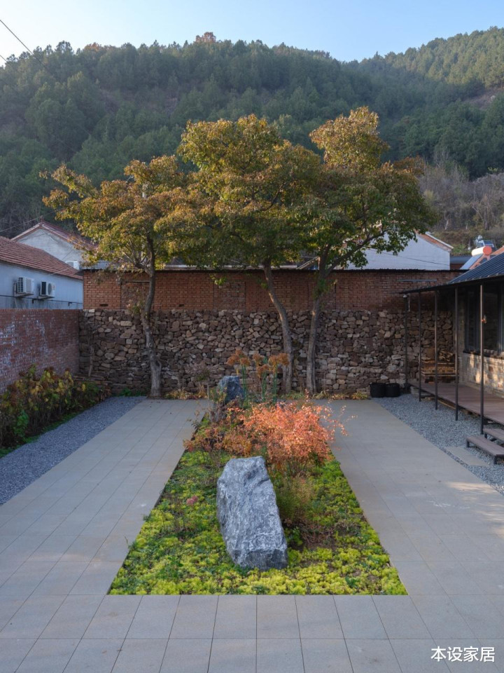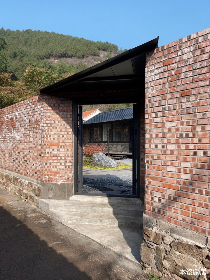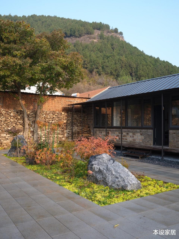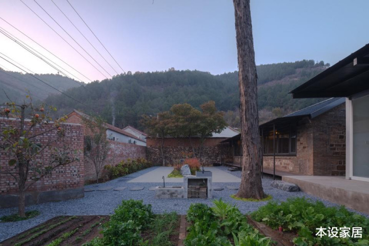 这块宅基地面积390㎡,除了将原有房屋修缮后作为客厅和卧室外,还增加餐厨单体和庭院景观,并重新修建红砖院墙和改变正门入口。