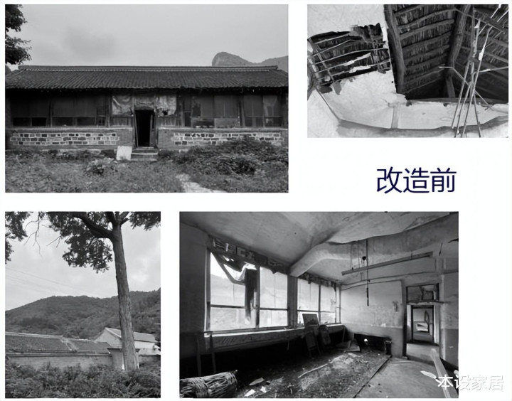 改造前,房屋破败不堪,门窗破损,杂草丛生。